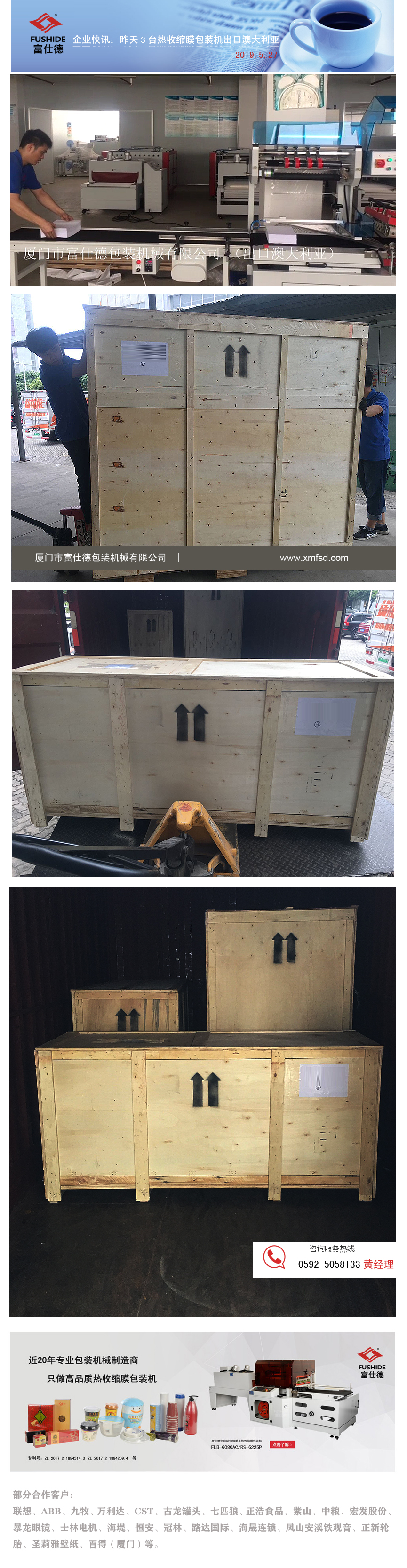 富仕德快訊:昨天出口3臺熱收縮膜包裝機(紙張熱收縮膜包裝機)到澳大利亞
